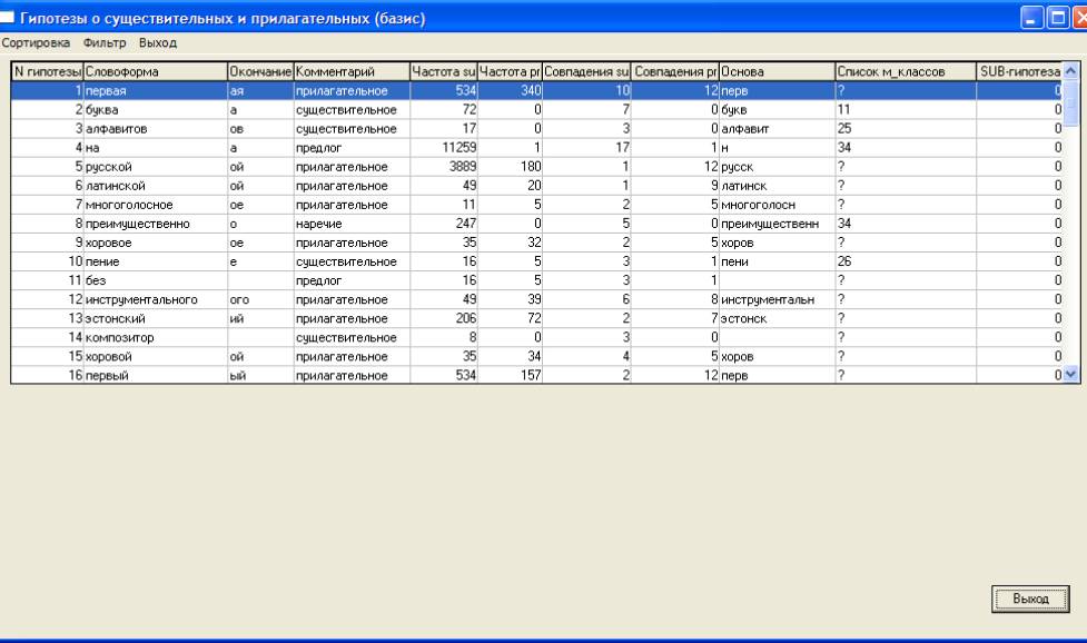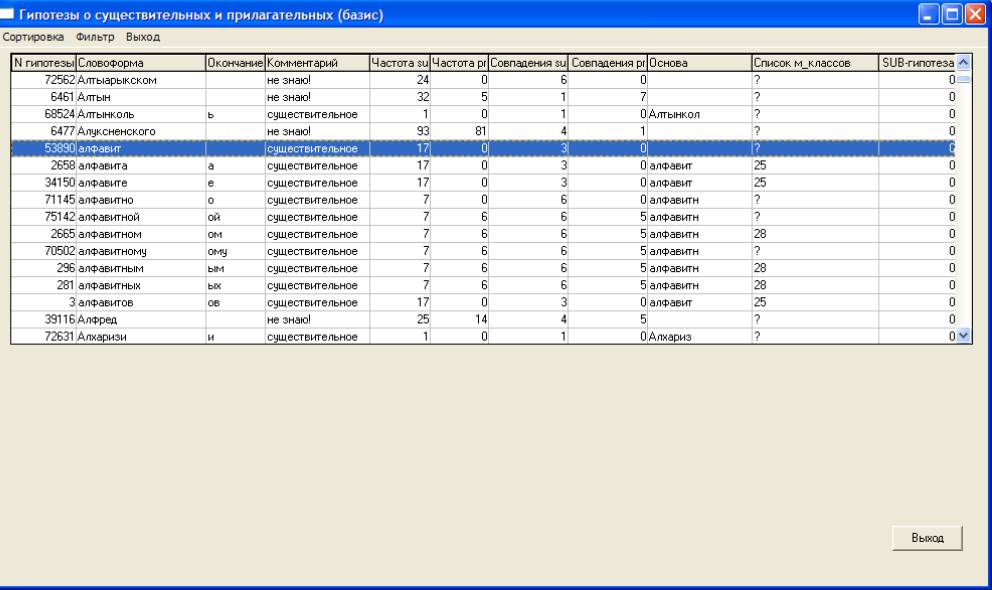 броузер, приведенный на рис. 4 (под базисными понимаются словоформы, входящие в
