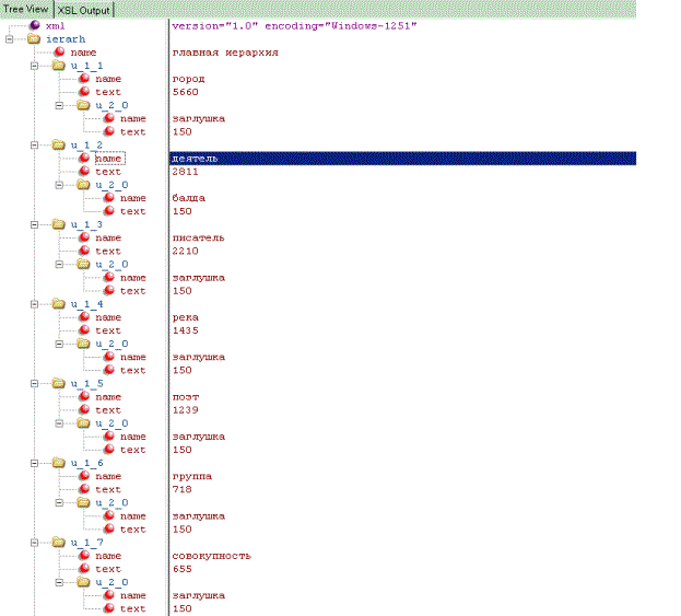 Рис. 1. Фрагмент иерархии из XML-файла.